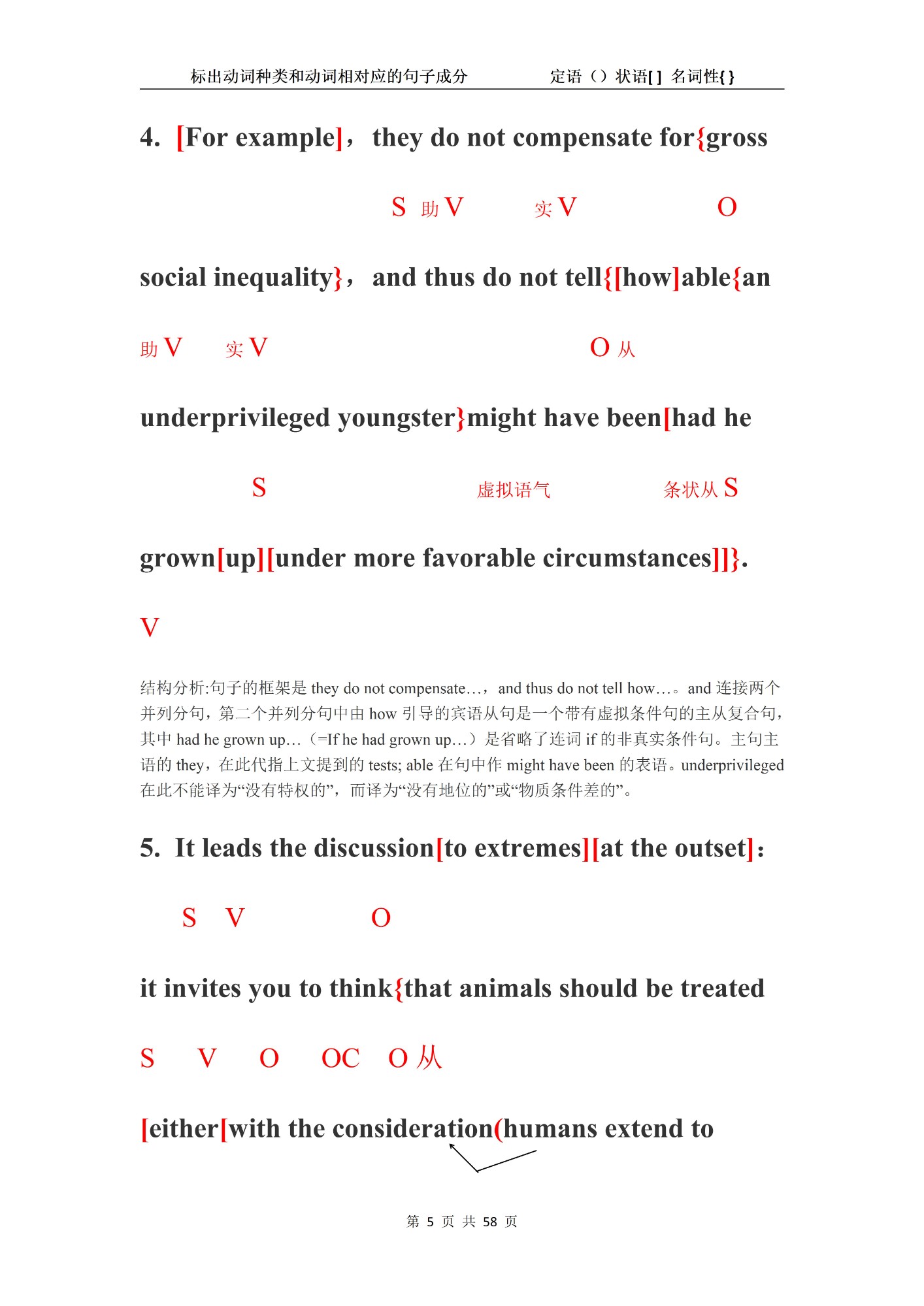 读不懂句子,可以分析句子结构。句子结构有自身的规律,找到了规律,将句子分析开来,就读懂了。句法分析是从语言本身的规律的出发,再结合上下文具体运用。英语语法的本身的规律可以用三句话来表示:1, 每个词都有词性;2, 每句话都有动词(实意动词或系动词)3, 每句话都必须符合五个基本句型中的一个。